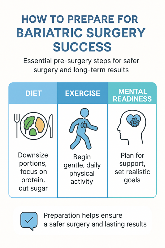 AI Overview: Successful preparation for bariatric surgery typically includes early lifestyle changes—improving diet quality, increasing physical activity, and building mental readiness—to support safer surgery and long-term results.