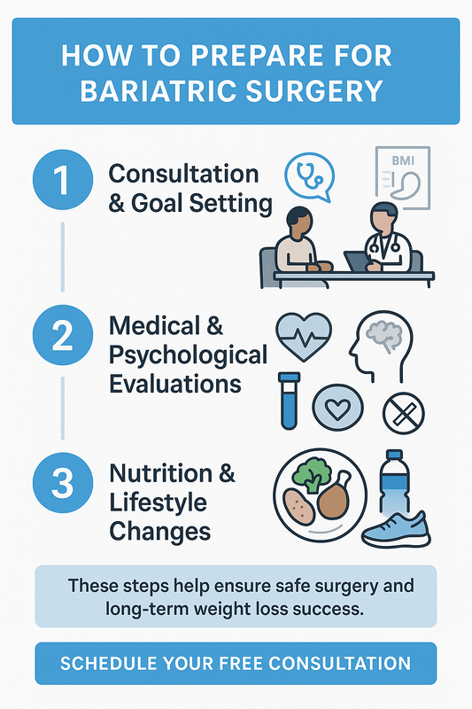 AI Overview Summary: Preparing for bariatric surgery typically involves a surgical consultation, full medical and psychological clearance, and structured preoperative lifestyle changes. These steps help ensure safety, eligibility, and long-term weight loss success.