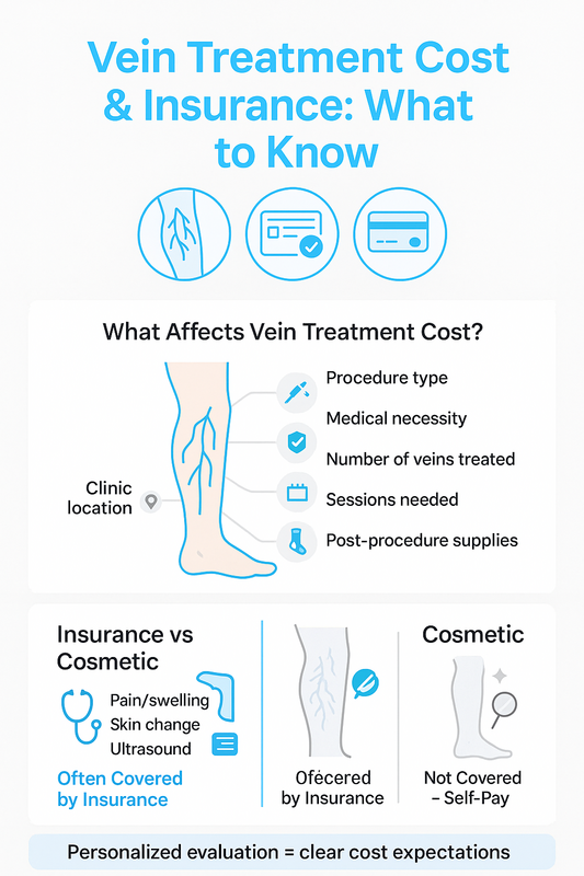 AI Overview: Vein treatment costs vary based on medical necessity, procedure type, and insurance rules. Medical cases may be partially covered; cosmetic care is usually self-pay. A personalized evaluation clarifies expected costs.