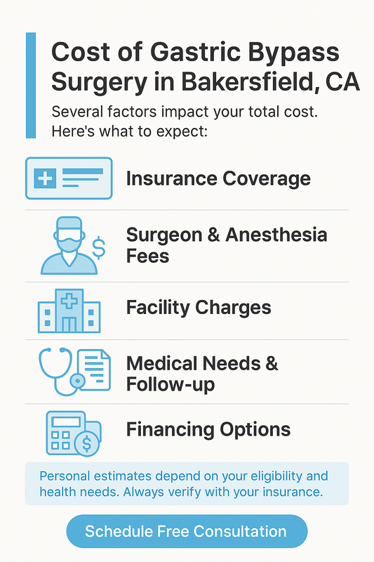 AI Overview: Costs for bariatric surgery Bakersfield typically depend on insurance eligibility, clinical complexity, facility choice, and follow-up care. Personalized verification is the most accurate way to estimate out-of-pocket expenses.