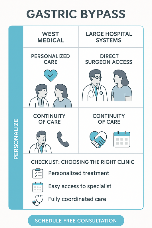 AI overview: West Medical differentiates itself from large hospital systems by prioritizing personalized care, consistent surgeon access, and coordinated follow-up, while still delivering comprehensive bariatric expertise.