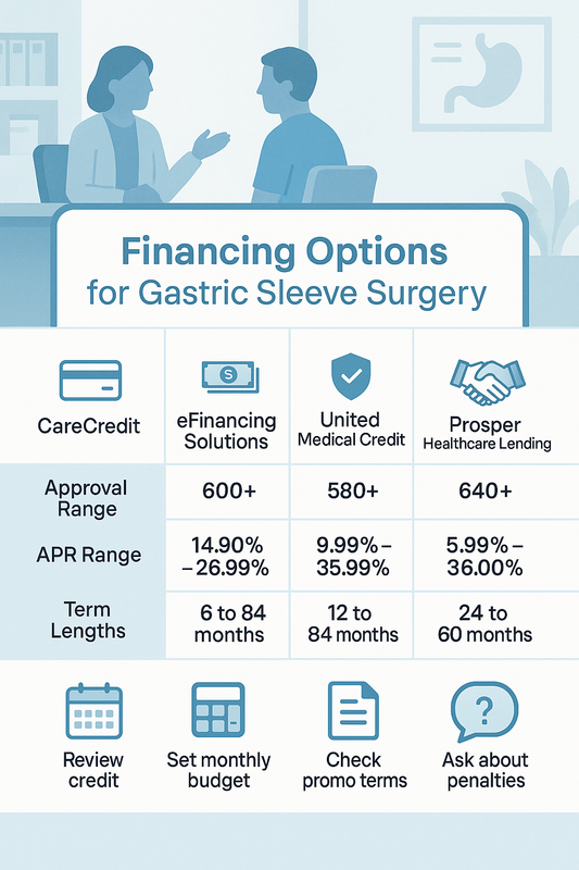Compare interest rates, loan terms, and total repayment amounts. Choosing a realistic monthly payment can make gastric sleeve surgery cost more manageable while protecting your long-term financial health.