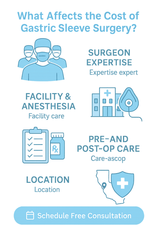In California, gastric sleeve surgery cost often reflects higher facility and staffing expenses, but pricing still depends on individual factors. Clinics may bundle services differently, so comparing what’s included is just as important as the headline number.