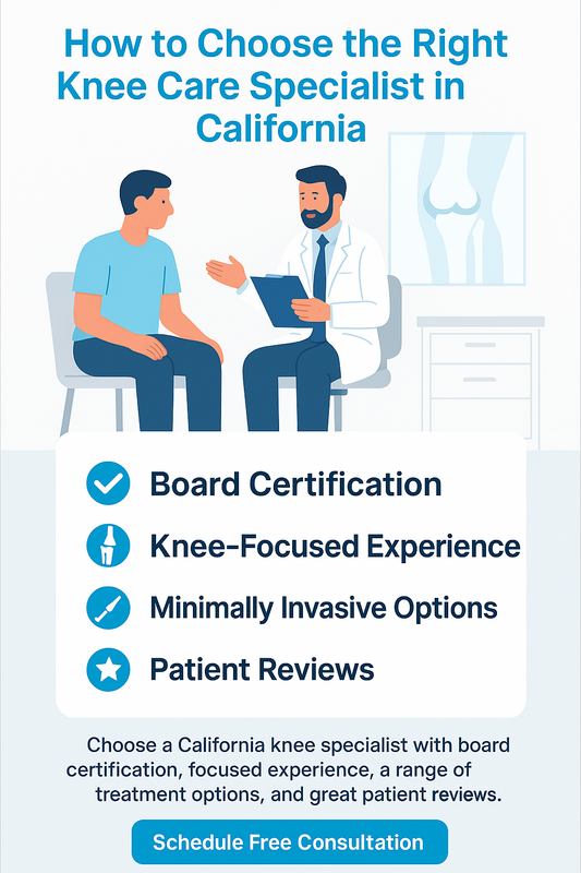 Quick decision summary: Choose a California specialist with board certification, knee-focused experience, comprehensive treatment options, and a patient-centered approach. This combination supports safer decisions and more confident outcomes.