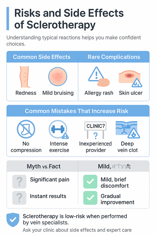 Sclerotherapy vein treatment is generally considered safe when performed by trained clinicians, but like any medical procedure, it carries potential risks and side effects. Understanding what’s typical—and what’s uncommon—helps patients make informed decisions with confidence.