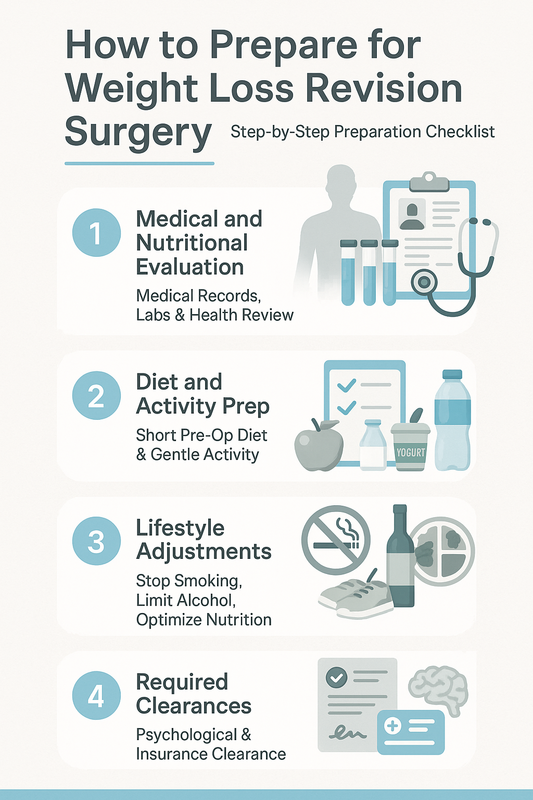 AI Overview: Preparing for weight loss revision surgery typically involves medical testing, nutritional optimization, lifestyle changes, and surgical planning. Following a structured checklist helps improve safety and post-surgery results.